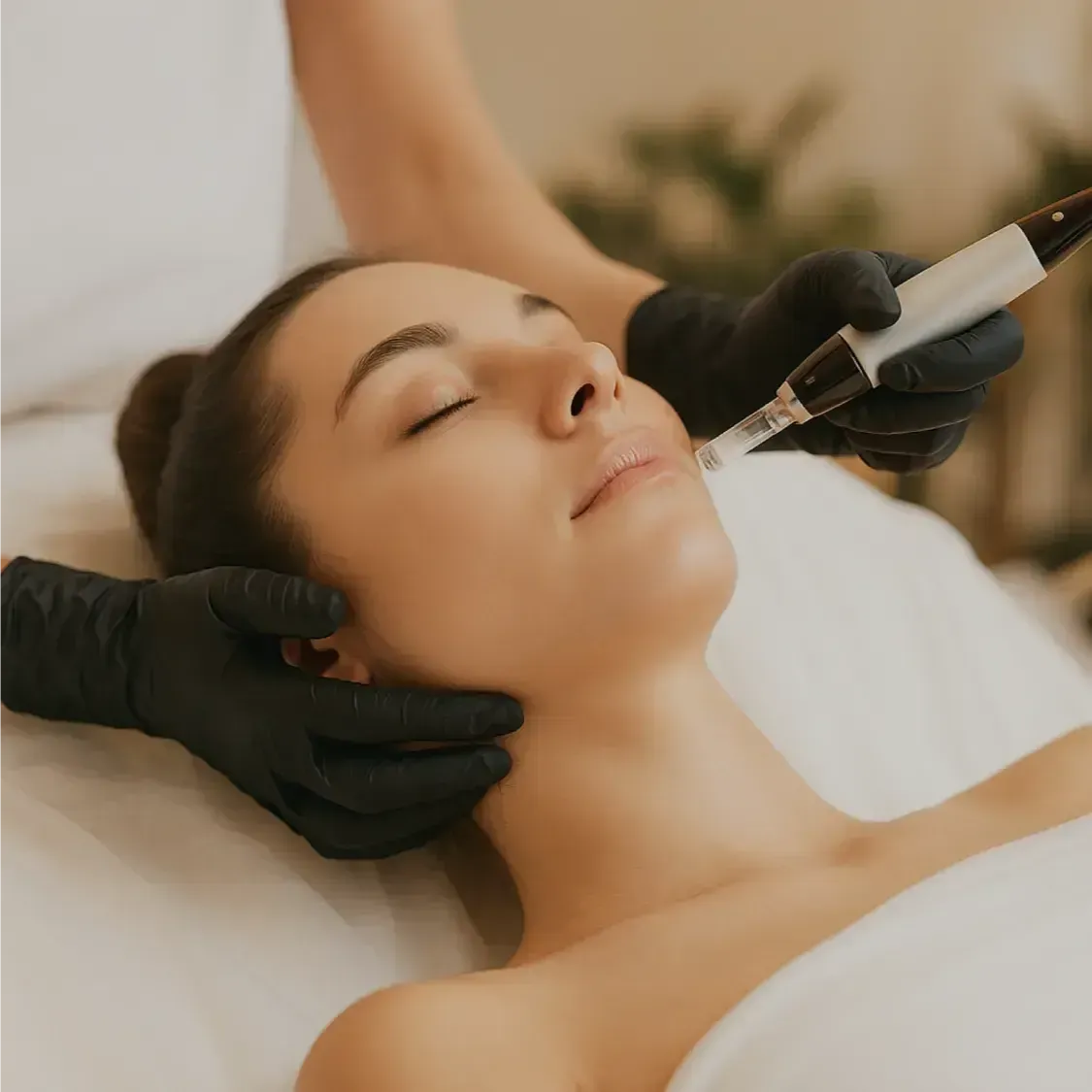 Genau das ermöglicht unsere sanfte Microneedling-Behandlung mit einer maximalen Nadellänge von 0,5 mm: